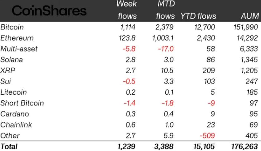 根据CoinShares在周一发布的报告,全球加密交易所交易产品(ETP)在截至上周五的交易周内录得12.4亿美元的资金流入。