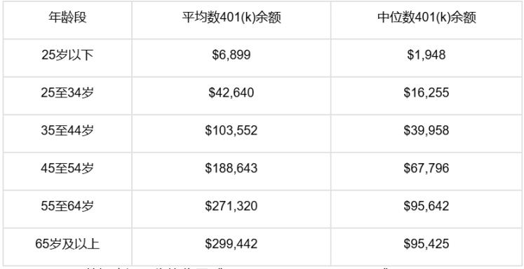 美国 401(k) 账户分年龄段余额情况(截至 2024 年)