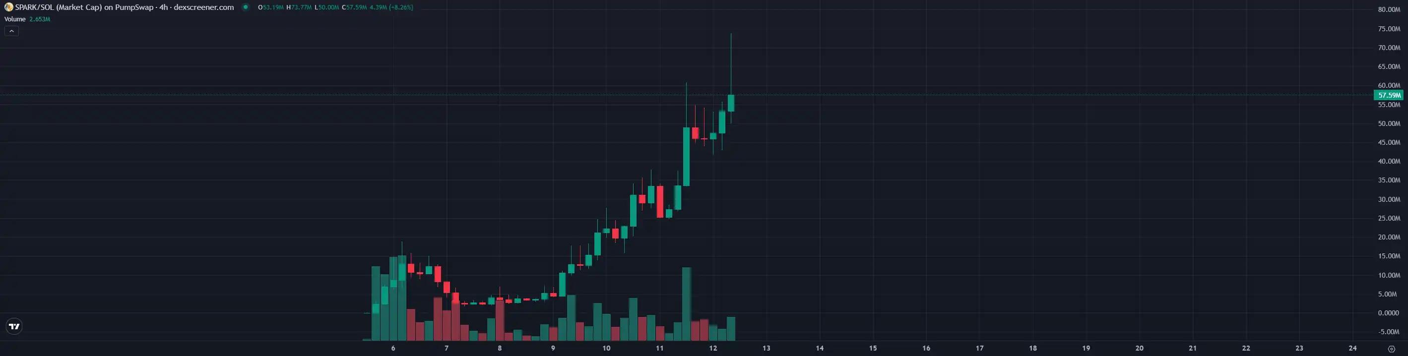 从马斯克「狂奶」Grok 的 AI 伴侣让 $Ani 成为 Letsbonk.fun 的「金狗」之一开始,市场就已经慢慢开始对 AI 赛道重拾信心。随着 pump.fun 在「meme 发射台大战」中重新回归榜首,一个新的 AI 大金狗 $SPARK 于上周末在 pump.fun 上跑了出来。