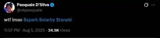 由于动画师 Pasquale D』Silva 在此前的职业生涯中还创造过一些其它的动画形象,而且在 8 月 5 日当天还直接提到了另外两个动画形象的 ticker,所以 $tanaki 和 $starby 也一度受到炒作。