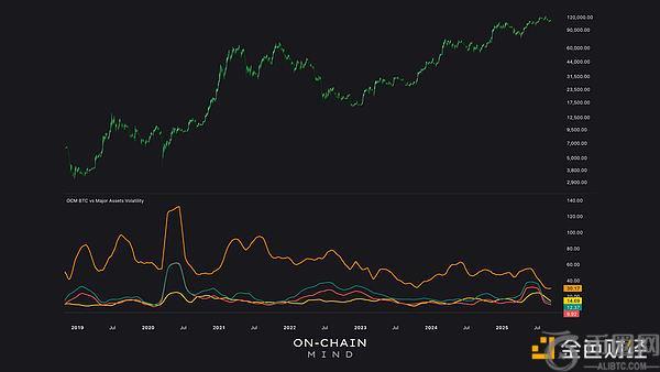 波动率的下降反映了比特币在全球金融市场中的日益成熟地位。它已不再是一种小众投机资产,而是更广泛金融生态系统的重要组成部分。当前评估比特币行为时,需综合考虑宏观经济周期、风险偏好以及与传统市场的相关性。