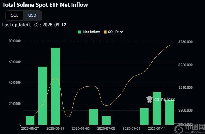 从 Rex-Osprey SOL + Staking ETF (SSK) 的 Solana 现货交易所交易基金 (ETF) 总量来看,上周已录得 1590 万美元的流入,支持了看涨观点。