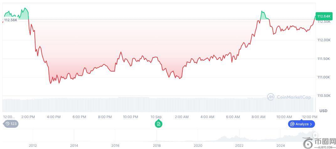 比特币(BTC)日线图,CoinMarketCap 截图,UTC 时间 2025 年 9 月 10 日 14:45。: CoinMarketCap