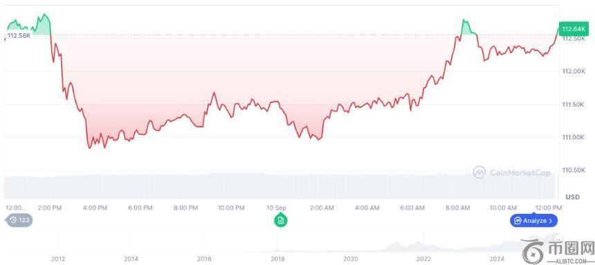 比特币(BTC)日线图,CoinMarketCap 截图,UTC 时间 2025 年 9 月 10 日 16:14。: