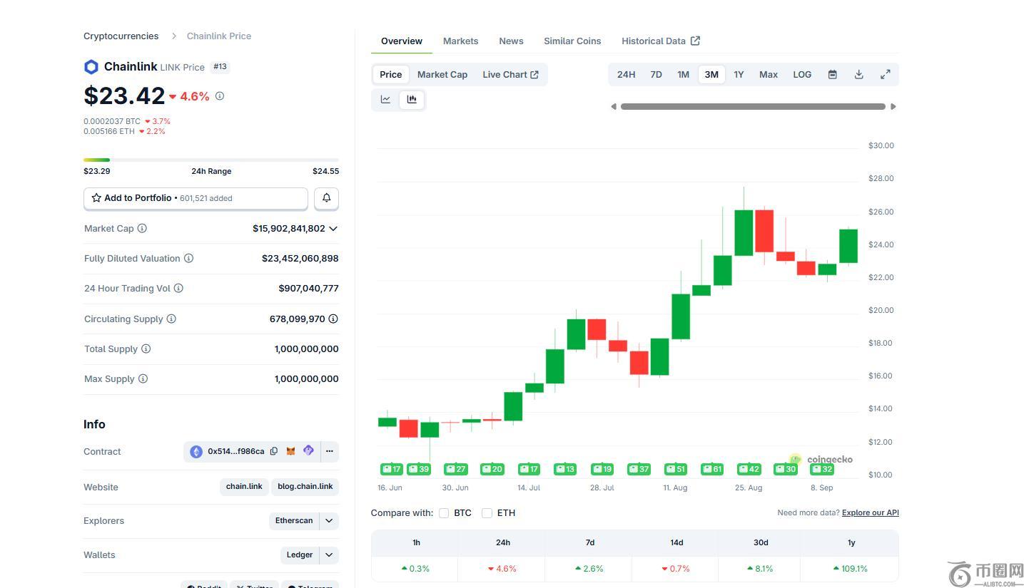 近期 [激增] 的背后是 8 月份 Chainlink Reserve 的推出。