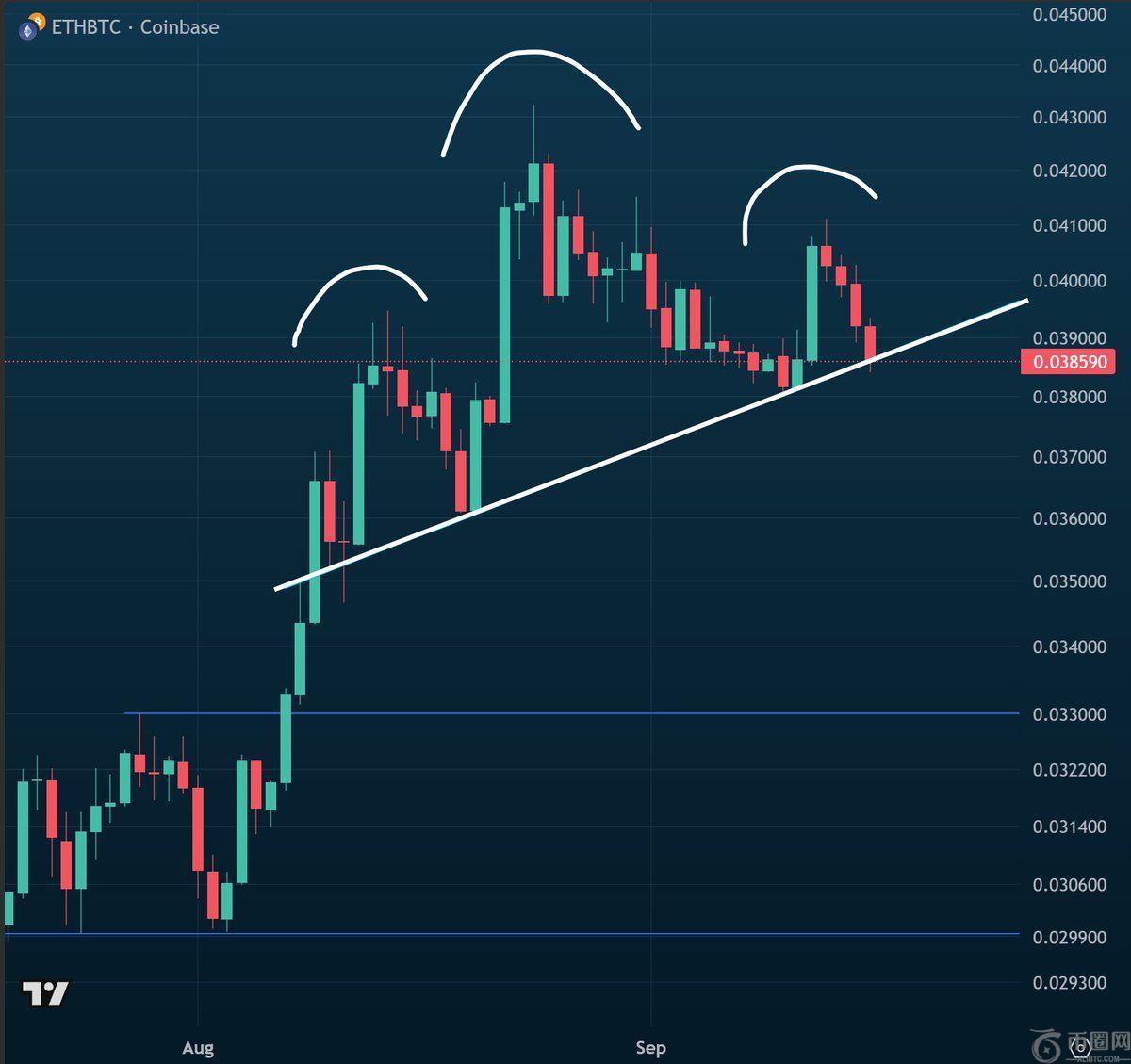 然而,并非所有观点都乐观。分析师 Colin 谈加密货币警告头肩形态正在形成,这种形态通常被视为看跌信号。如果得到证实,这可能预示着动能减弱,并可能出现趋势逆转,从而预示着以太坊短期内可能相对于比特币下跌。