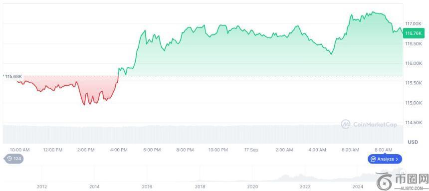 截至 2025 年 9 月 17 日,比特币(BTC)比特币价格为 115,748.72 美元,市值为 2.31 万亿美元,24 小时内下跌 0.97%。交易量为 482.3 亿美元,市场活跃。此数据于CoinMarketCap,突显了 BTC 在三个月内增长了 10.91%,流通供应量为 19,922,253。