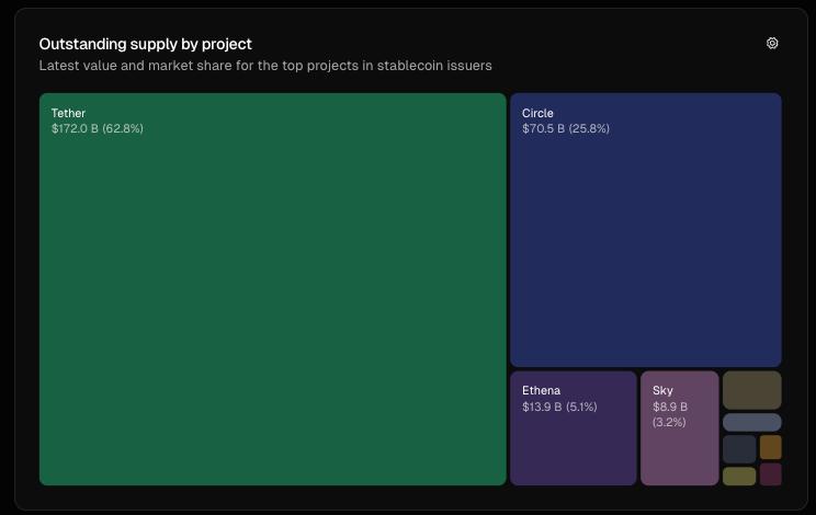 随着这些 Layer 1 挑战传统玩家,它们也在重新塑造市场结构。目前,Circle 和 Tether 凭借占据近89%的发行量主导稳定币领域,截至2025年9月,Tether 占比62.8%,Circle 占比25.8%。通过推出自己的 Layer 1(Arc 和 Stable/Plasma),它们通过设置高准入门槛来巩固主导地位。例如,Plasma 为其代币销售上限筹集了10亿美元的金库存款,这构成了较高的准入门槛。