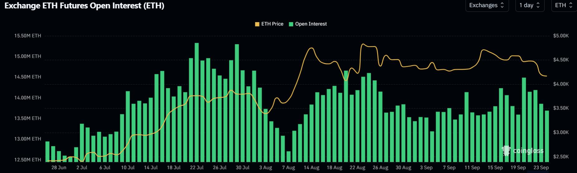 根据 Coinglass 的数据,过去 24 小时内以太坊的期货清算额为 5540 万美元,其中多头清算额为 3930 万美元,空头清算额为 1610 万美元。