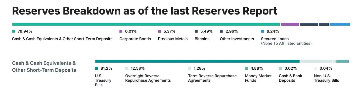 · 100% 储备为现金和短期美国国债(不包括比特币、黄金或担保贷款)