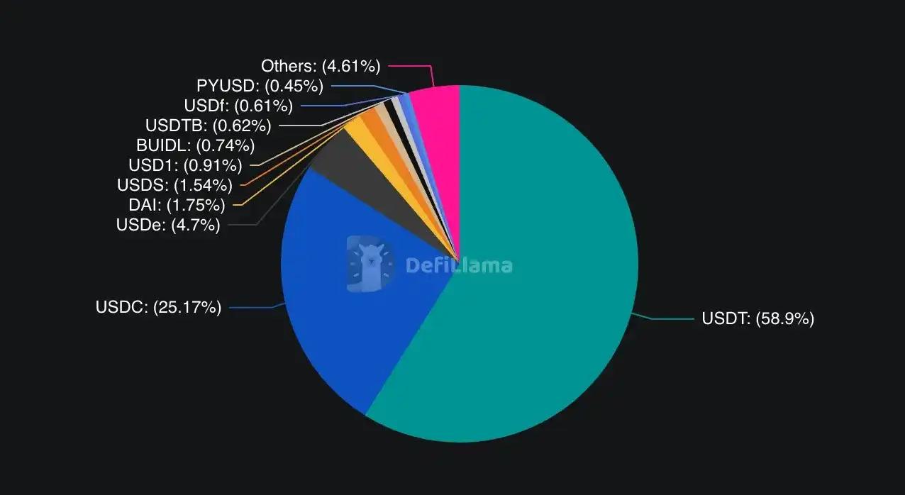 USDC 控制着全球稳定币市场约 25% 的份额,但在受监管的美国市场中占据主导地位。USDT 在全球拥有 58% 的市场份额,但在合规的美国市场中基本被排除在外。