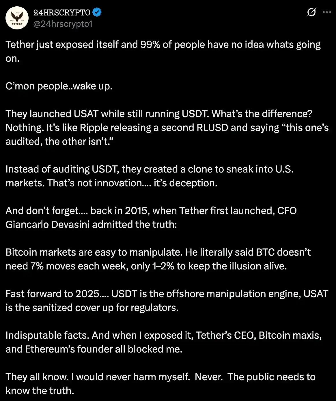 批评者认为,USAT 本质上是「合规表演」——泰达进入美国市场的一种方式,但却没有解决其核心业务的透明度和运营问题。