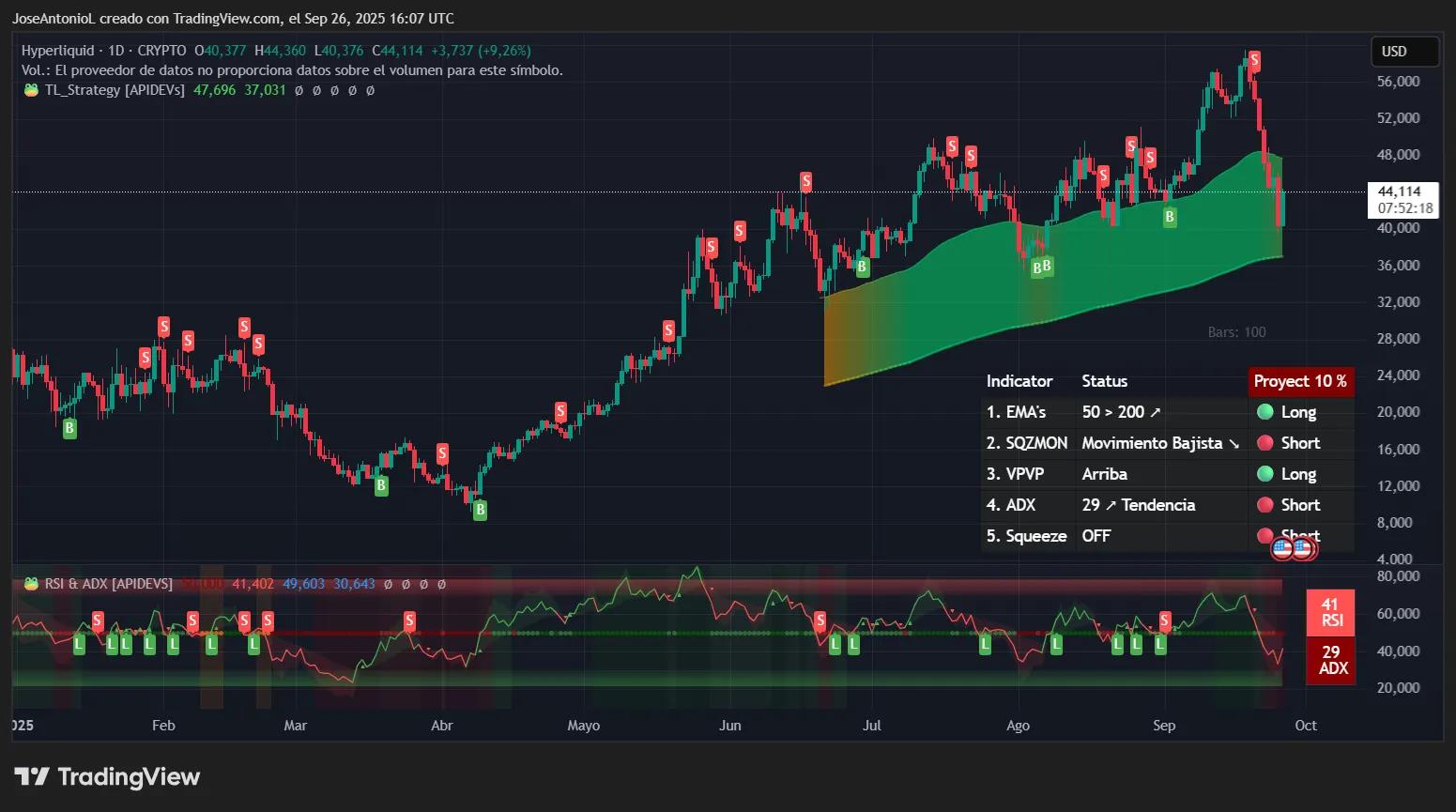 Hyperliquid 代币今日从 40.376 美元的低点飙升至目前的 44.114 美元,在其他所有代币都在下跌的市场中上涨了 9.26%。