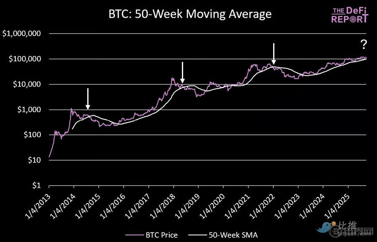 比特币的 50 周移动平均线目前为 99,000 美元。