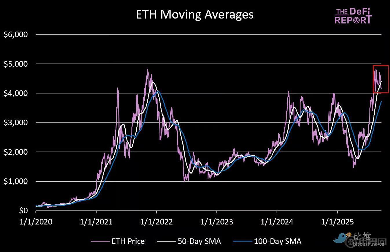 ETH 已跌破其 50 日移动平均线,目前交易价格低于至关重要的 4,000 美元关口。