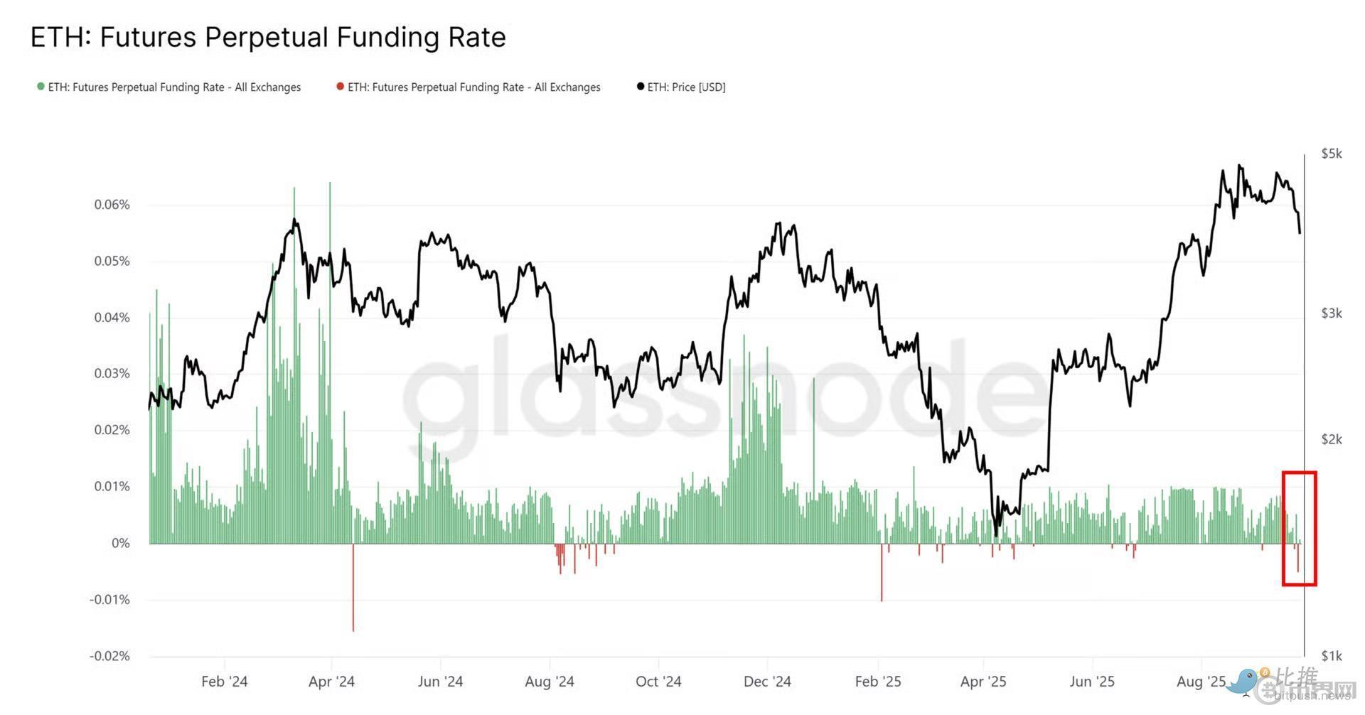 随着动能减弱,期货市场中 ETH 的资金费率已转为负值。