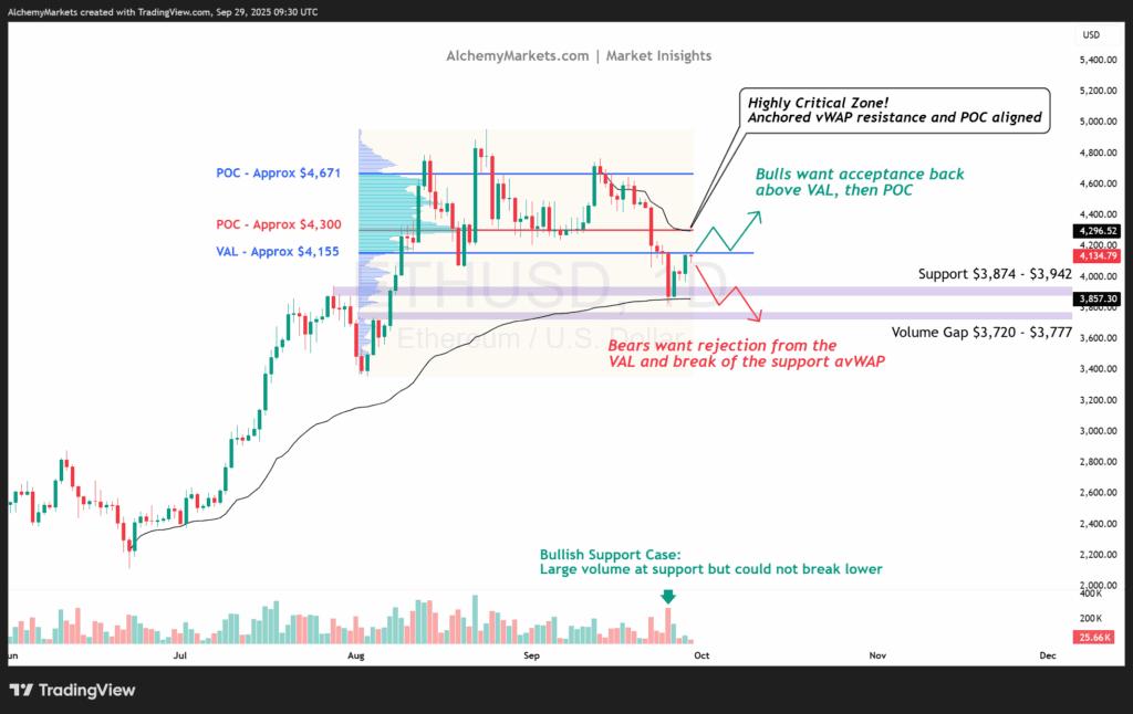 在从 4,700 美元强势反弹之后,以太坊似乎比比特币更好地守住了关键支撑位。目前,它正在测试低值区域 (VAL)它的成交量概况从 8 月份开始,其价格从约 3,400 美元上涨至约 4,900 美元。