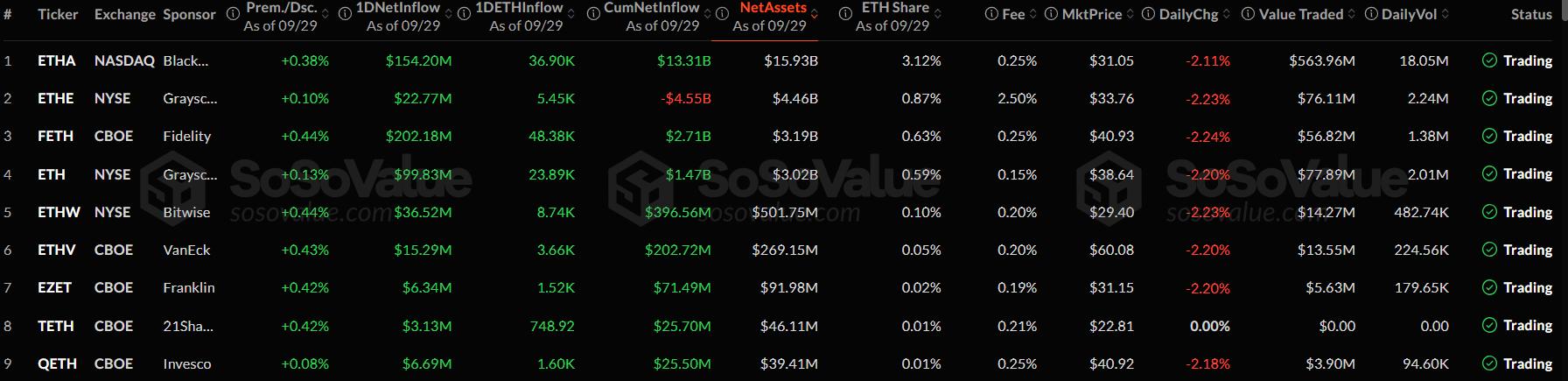 值得注意的是,这 9 款产品自 2024 年 7 月推出以来首次同时出现资金流入,其中富达的以太坊基金 (FETH) 和贝莱德的 iShares 以太坊信托 (ETHA) 分别以 2.0218 亿美元和 1.542 亿美元领先。