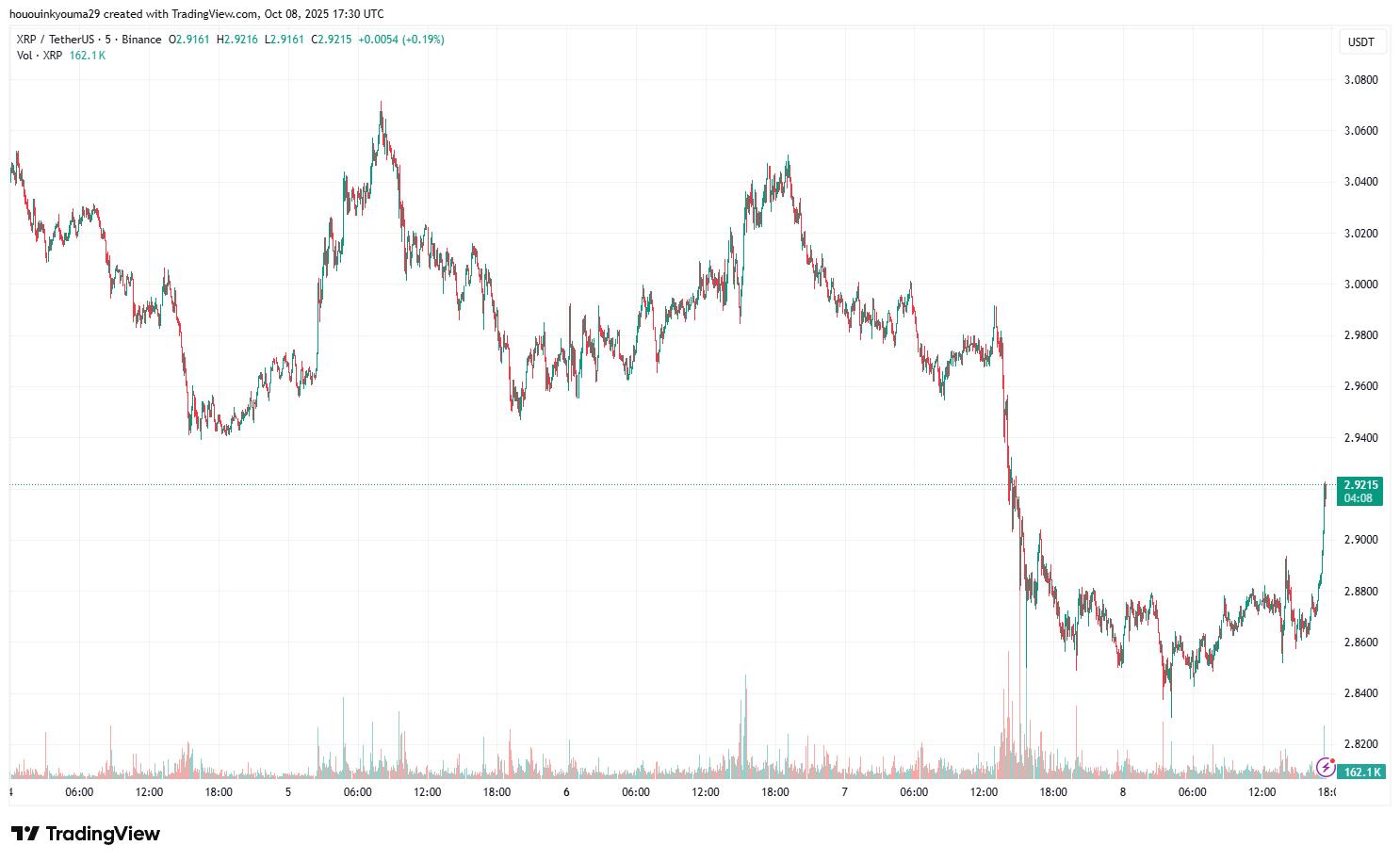 在撰写本文时,XRP 浮动在 0.292 美元左右,过去七天下跌了 3%。